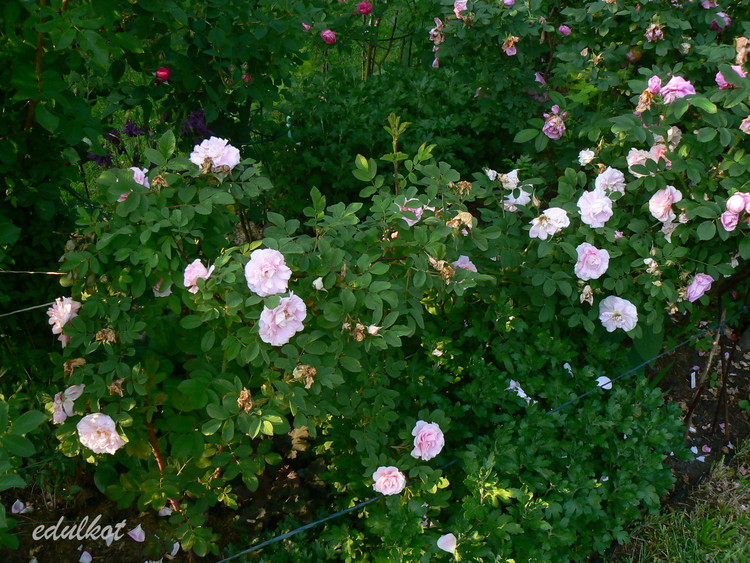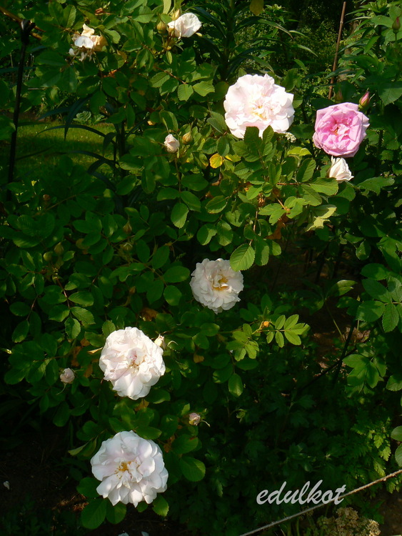 Kwiaty: jasno-różowe jaśniejące do białego w miarę rozkwitania, średnie ok. 5-6 cm, półpełne (26-40 płatków), kwitnie cały sezon aż do mrozów, w czasie deszczowej pogody pąki mumifikują się i trzeba obrywać te mumie,