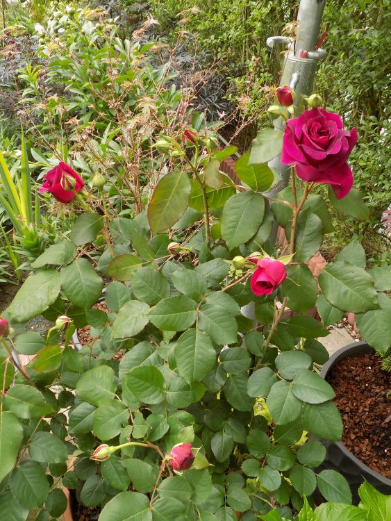 U mnie tylko Rosa spinosissima var. altaica ma pączki. Nawet rugosy jeszcze nie mają.