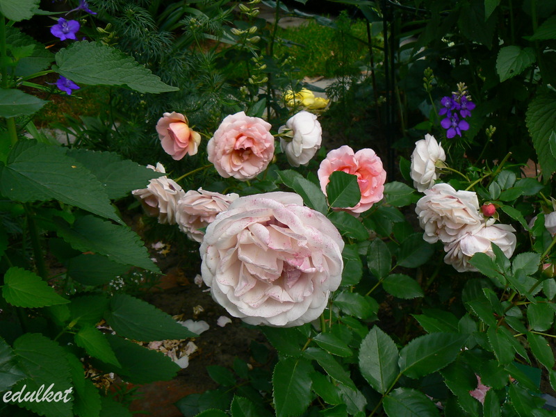 Nowa róża perska a już od początku miała wigor. Co prawda przy ciągłych deszczach w lecie stała goła, ale dość szybko się zregenerowała i zawiązała nowe pączki. Pędy wyginają się pod ciężarem kwiatów co przy jej jak na razie nikłym wzroście nie wyglądało zbyt dobrze.