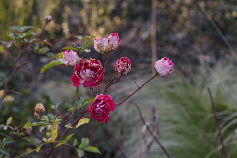 przy ciepłej słonecznej pogodzie zmienia się w odcienie różu z domieszką białego i kremowego,
