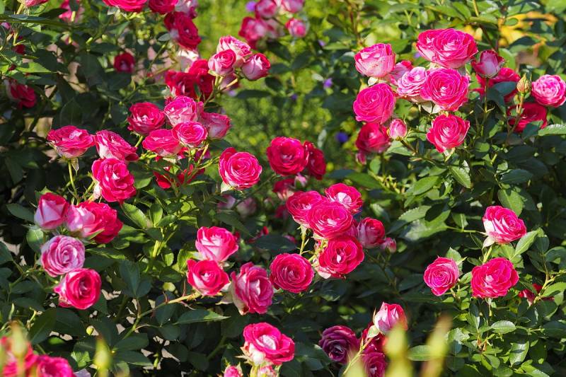 Kwiaty: Drobne średnicy 4-5 cm, pełne czerwono-białe zebrane po kilkanaście w kwiatostanie.