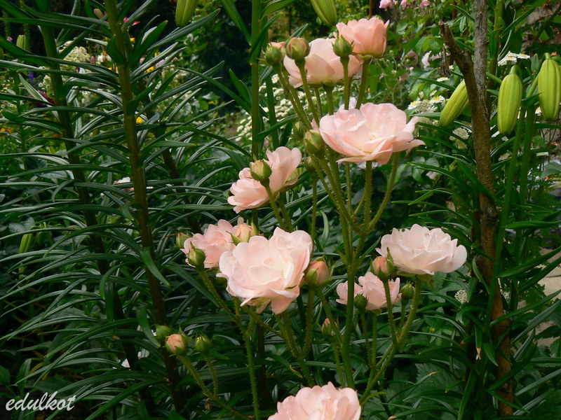 Za to pędy ma wiotkie i muszą się podeprzeć choćby o lilię.