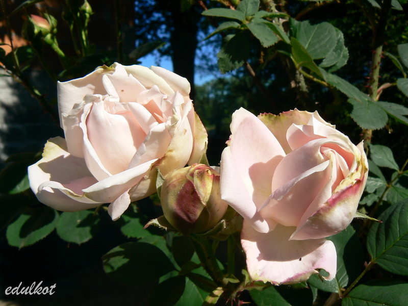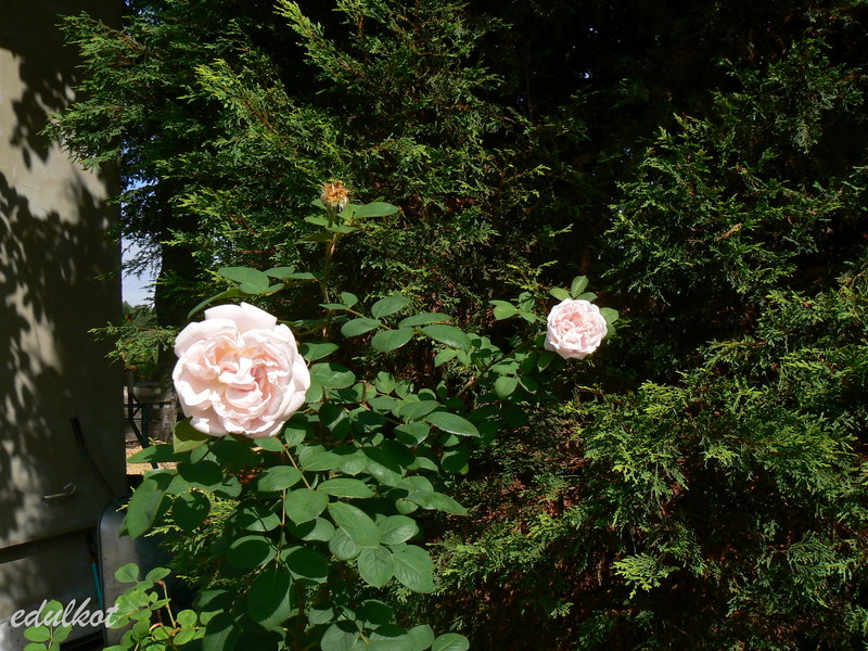 Kwiaty: bardzo duże, półpełne, w kształcie pucharu, bladoróżowe z nutą lila, bieleją przy przekwitaniu, kwitnie obficie, skromniej powtarza;