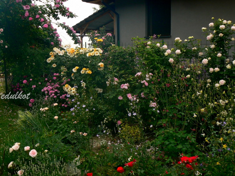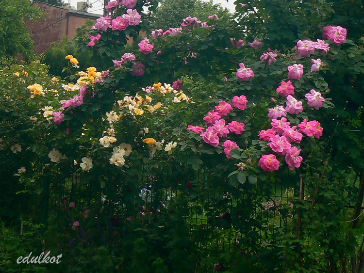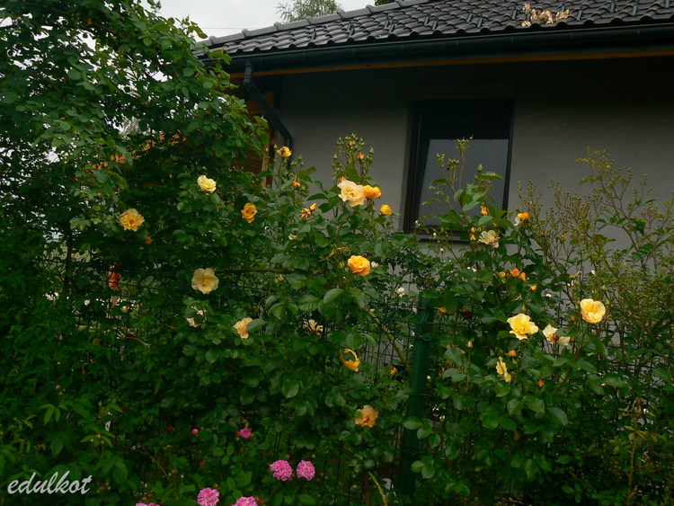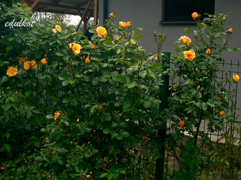 Powolutku się rozkrzewia, kwiatki ma śliczne z żółtymi pręcikami przechodzącymi w czerwony kolor. Wygląda na to, że jest odporna na choroby grzybowe bo do końca sezonu miała ładne liście, choć wyczytałam, że na czarną plamistość podatna. Słaba wytrzymałość na zmienne temperatury zimą i na przedwiośniu, w 2017 cięta do ziemi, ale do końca sezonu urosła do przeszło 2 m.