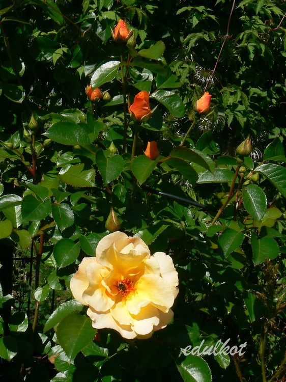 Róża krzewiasta, krzyżówka róż: nasienie Sally Holmes X [Fair Bianca x Magenta] - pyłek Pimprenelle;