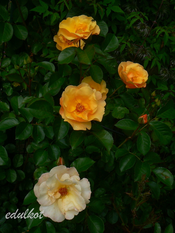 Kwiaty: duże, pojedyncze do półpełnych, płaskie, złoto-żółte blaknące w rozkwicie, kwitnie wiechami cały sezon;