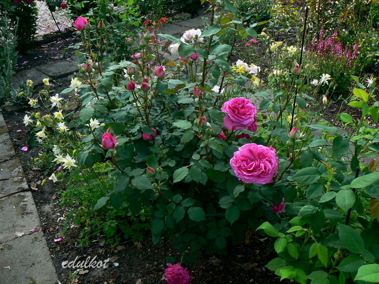 Jej bujny wzrost może przyprawić o rozstrój nerwowy, ciągle pnie się w górę a na końcówce pędów wytwarza wiązankę pąków. Zakulkowana też nie wygląda dobrze, już sama nie wiem jak ją prowadzić. Za to widok jej kwiatów i oszałamiający zapach wynagradzają te mankamenty. Z początku byłam przekonana, że jest odporna na choroby i na deszcze, okazało się wręcz przeciwnie. Mączniak prawdziwy to jest nieodłączny towarzysz w drugiej połowie lata, dlatego jeżeli dam jej zakwitnąć to kwitnie na gołych patykach. Podczas długotrwałych deszczy kwiaty gniją na pniu bez możliwości rozkwitu, tak bywa w każdym sezonie.