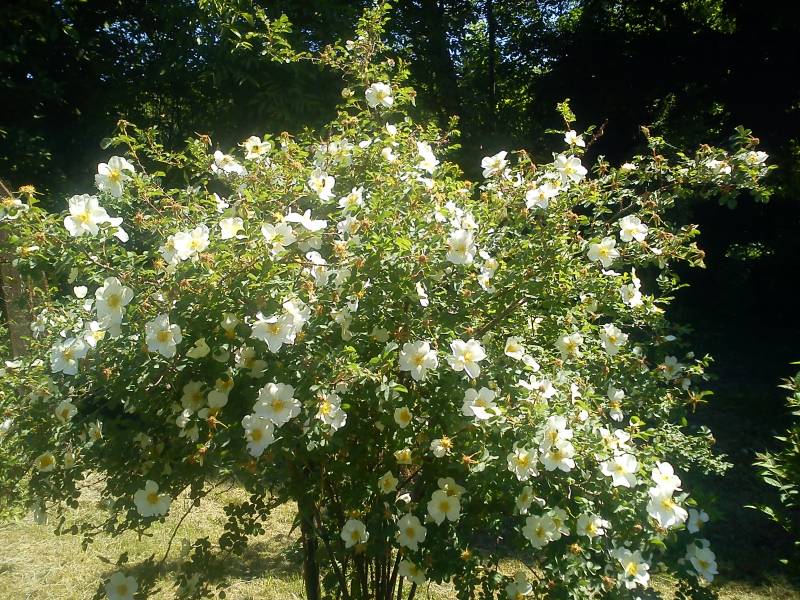 Pierwsze kwiaty Louis Riel, niestety, tylko jedno zdjęcie się w ogóle nadaje do pokazania. W każdym razie, zadowolona jestem ogromnie- widać, ze ta róża lubi kwitnąć, kwiaty też są zdumiewająco duże jak na mieszańca rubrifolii. Trochę niepokoi mnie pokrój ale, mam nadzieję, do wypracowania jest.