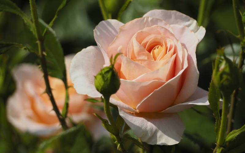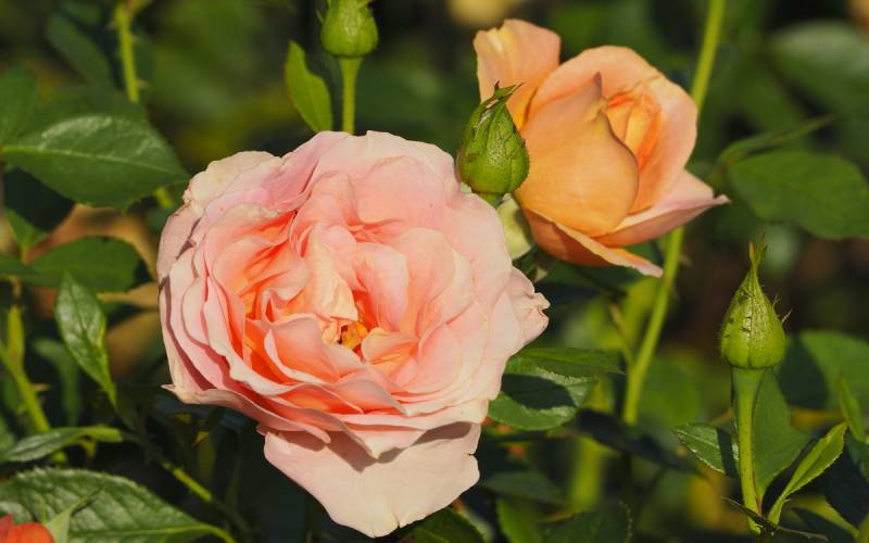 Liście: ciemne, błyszczące, bardzo zdrowe, młode pędy czerwone; róża mocno kolczasta