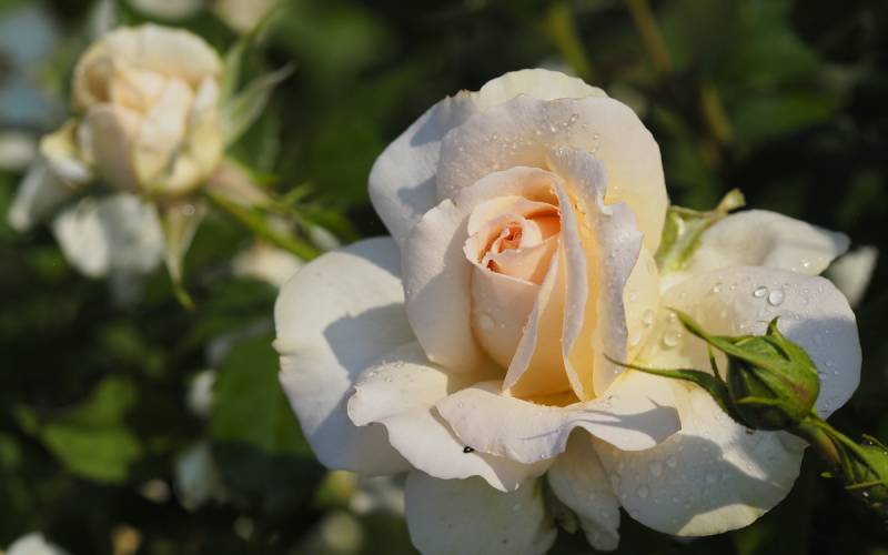 Kwiat: kremowy z różowym rumieńcem o szlachetnym kształcie ( Ø: 8 -10 cm ) złożony z ponad 50 płatków