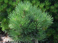 Przybiera pokrój spłaszczonej kuli. Igły długie, wygięte . Budowa bardzo gęsta