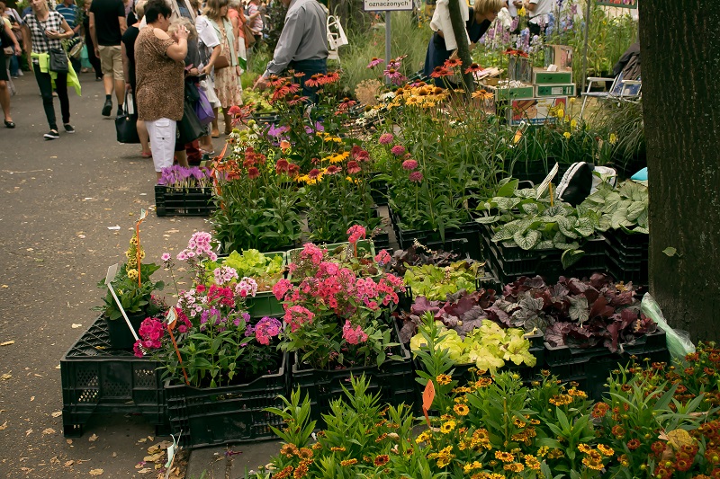 Prezentują się tutaj szkółki z wielu stron Polski, ale także hobbyści z ciekawostkami. Niestety przeważają rośliny dla klienta masowego.Ale można wyłowić jakieś ciekawostki, jeśli się ma cierpliwość do spacerowania w tłumie ciągnącym torby z zakupami, wózki z dziećmi, dzieci za rękę, psy za smycz. Stoiska z roślinami są przemieszane ze straganami z płytami disco polo, wyrobami rękodzielniczymi (koszyki i doniczki, głównie made in china), starociami, wyrobami cukierniczymi, piekarskimi, wędliniarskimi, nabiałowymi z różnych regionów Polski i Europy, barami szybkiej obsługi, stoiskami z orzeszkami w karmelu, żelkami, watą cukrową, biżuterią, ciuchami, zabawkami, figurkami, militariami, kolorowymi balonami, Indianami peruwiańskimi grającymi na fletniach pana szlagiery polskiej muzyki biesiadnej, helem do wdychania "dla śmiesznego gadania"...i mnóstwem innych rzeczy