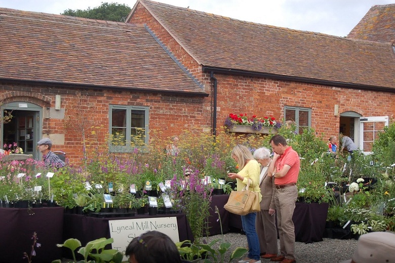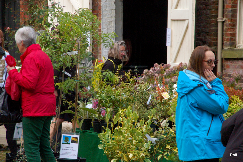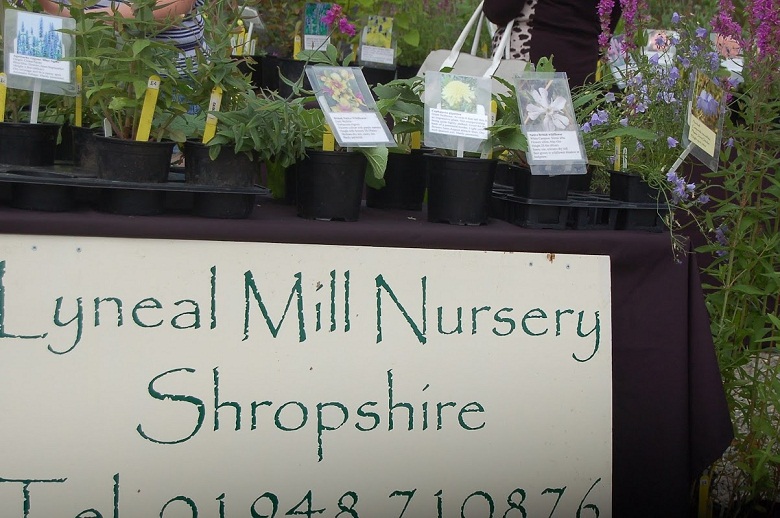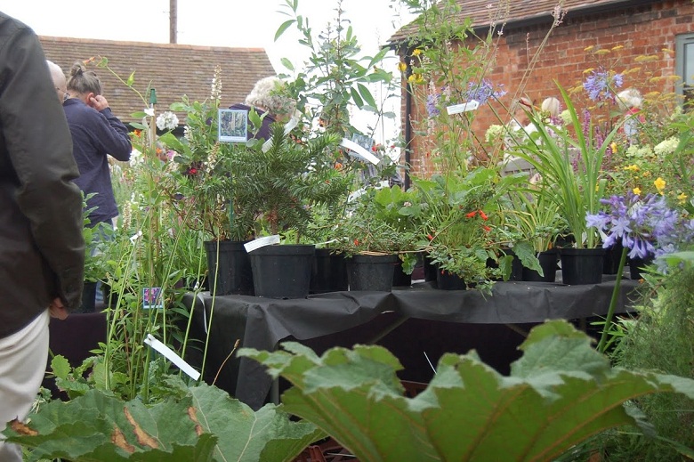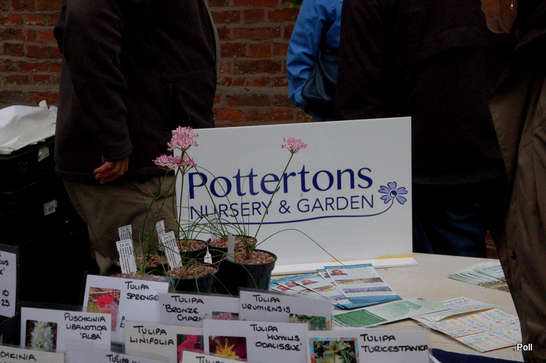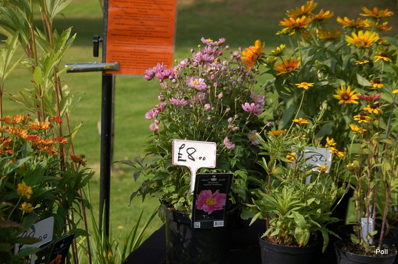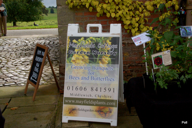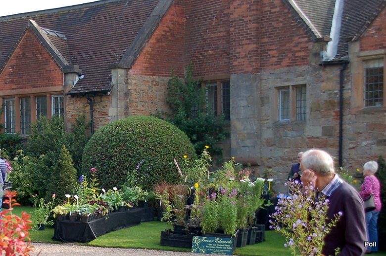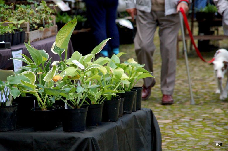 Stoiska kiermaszowe ustawiono wzdłuż dróg, między innymi tuż koło zabudowań gospodarczych , oraz murów okalających część ogrodową posiadłości. Część stoisk rozłożono na trawnikach. Impreza była kameralna, skupiała bowiem nie więcej, niż 40 wystawców, ale za to były to nursery z najwyższej półki, które widziałam również na Flower Show. Wybór roślin był dość szeroki a i ceny nieco niższe, niż na Flower Show.
