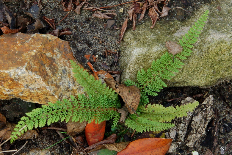 Okazało się, że okrywając na zimę paprocie stroiszem iglastym, przycisnęłam gałęziami liść z rozmnóżką a ona skorzystała z okazji i się ukorzeniła.