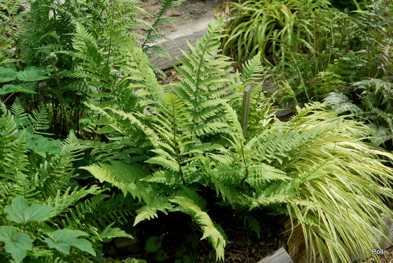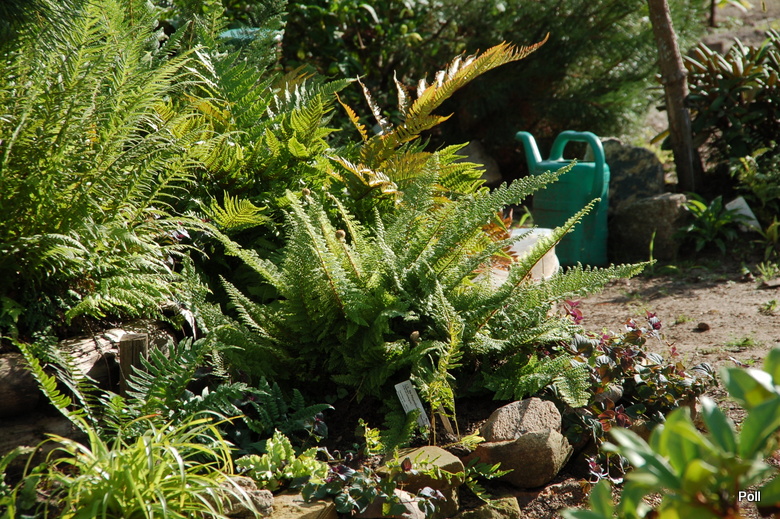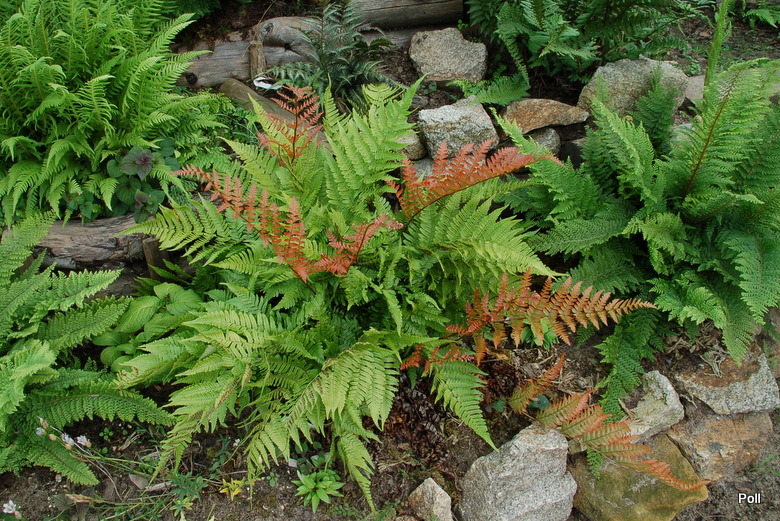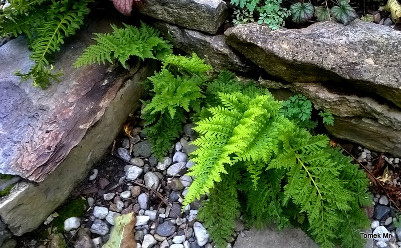 Zazwyczaj ,paprocie nie mają wielkich wymagań glebowych , są odporne na wrogie działania ślimaków i innych szkodników, ich sezon wegetacyjny jest przedłużony - gdy inne rośliny zamierają,one są w pełni rozwoju. Na zdjęciu widać paprotkę \malahatense' i zasypiajacą na zimę hostę