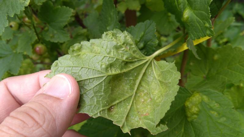 Czy ktoś może mi podpowiedzieć co jest przyczyną takich liści na porzeczce.