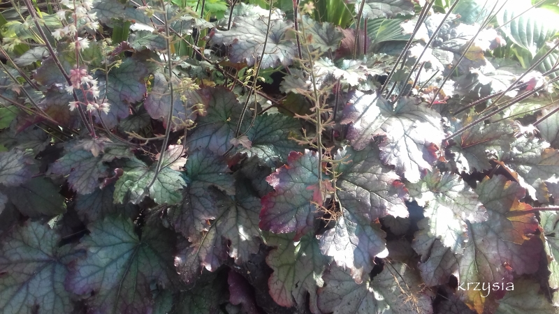 Rodzaj: Żuraweczka (Heucherella) Odmiana: Cracked Ice Wymiary : odmiana tworząca kępy o szerokości 40 cm i wysokości 15-20 cm/ 25 cm z kwiatostanem. Kolorystyka: liście srebrno-zielone z fioletowym marginesem i ciemnym żyłkowaniem . Kwiaty: białe. Kwitnienie: od czerwca do lipca. Warunki: stanowisko pół-cieniste/cieniste.