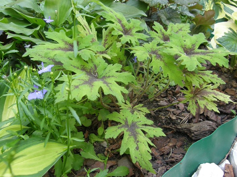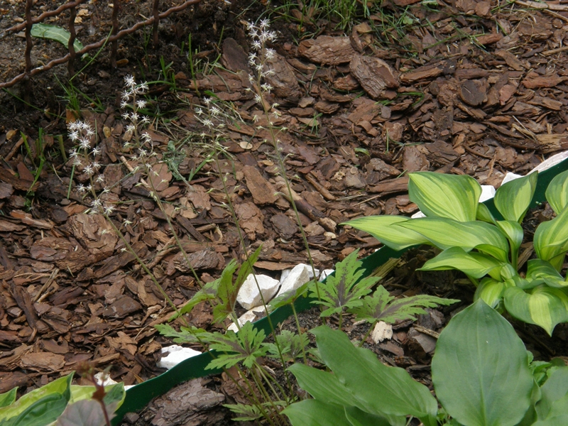 Rodzaj: Tiarella Odmiana: Timbuktu Wymiary: tworzy kępy o szerokości 30 cm i wysokości 20 cm. Kolorystyka: liście mocno powcinane, zielone z mocno bordowym centrum Kwiaty: białe, typowe dla tiarelli - gwiazdkowate Kwitnienie: od maja do czerwca, u mnie pierwsze zawiązki kwiatów pojawiły się już w drugiej połowie kwietnia Warunki: stanowisko od półcienia do słońca
