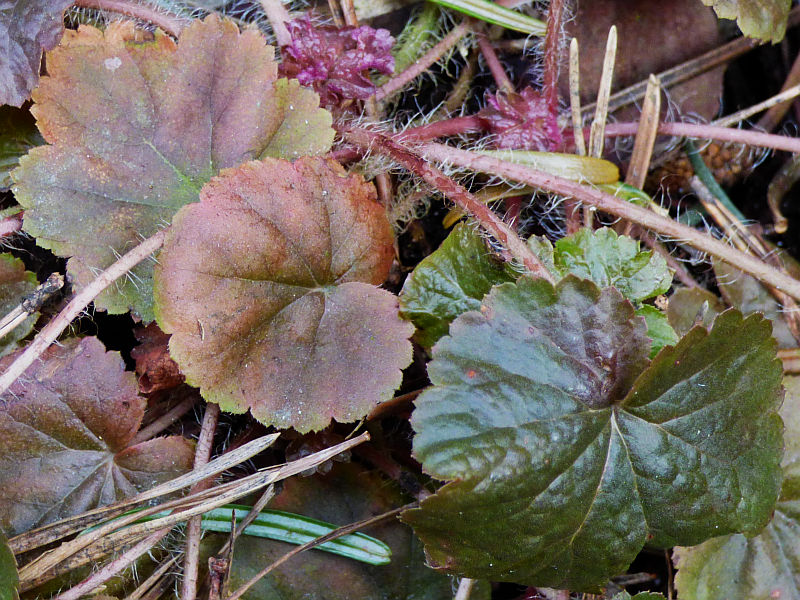 Heuchera cylindrica var. alpina... odmiana karłowata... po 2 latach pędy sięgają li tylko do 2 cm a średnica kępy dochodzi do 15 cm... kwiaty są nieco większe niż u gatunku, białe lub kremowe, czasem ze śladami czerwieni... kwitnie w drugiej połowie kwietnia