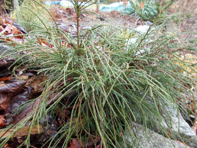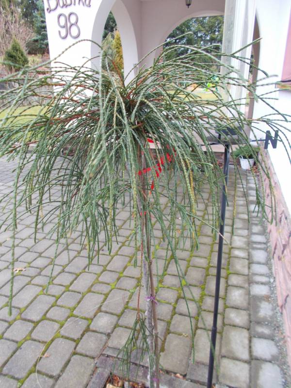 Korona gęsta, zwarta, regularnie stożkowata. Samotnie rosnące drzewa zachowują gałęzie do samej ziemi.