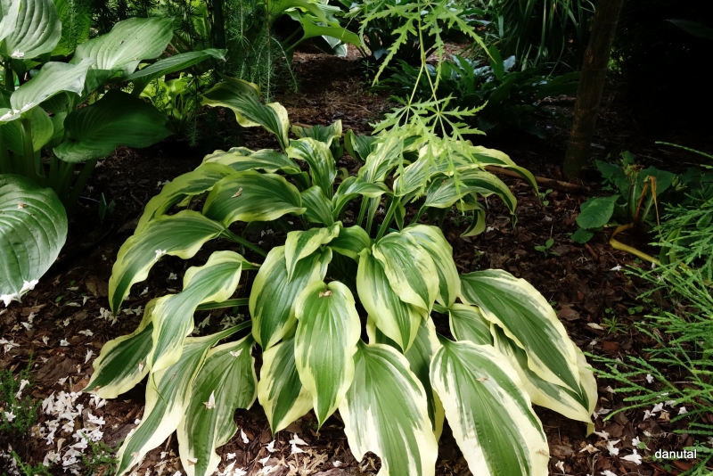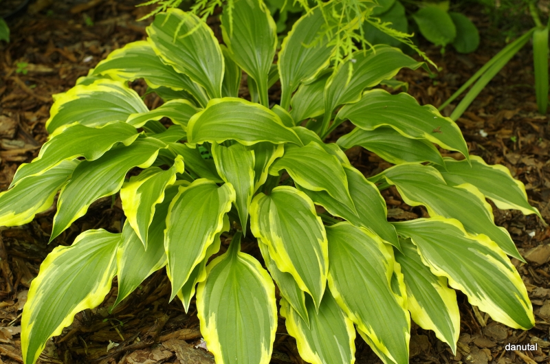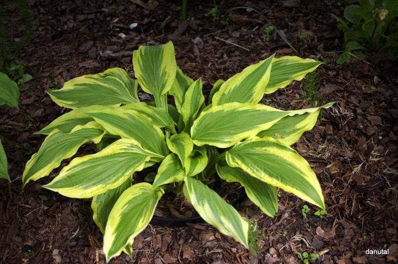Moja hosta Peedee Laughing River, to 7latka, dzielona. Rośnie na jasnym, ale dobrze podlewanym stanowisku.Bardzo ja lubię i robię jej mnóstwo zdjęć.