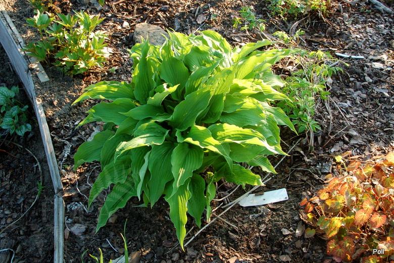Moja hosta Sahara Nights, to roślina czteroletnia, raz dzielona. Obecnie rośnie na Sławojkowie, na dobrze zasilanym w wodę miejscu.