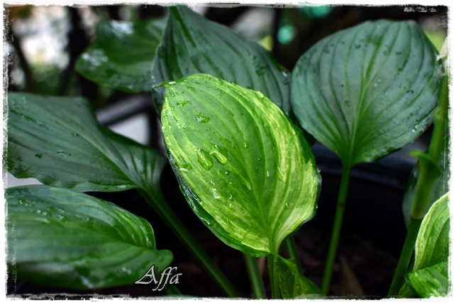 Po lewej Auromaculata (liść sercowaty), po prawej Albopicta (liść dłuższy, podłużny)