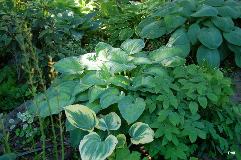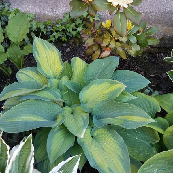 Uwagi: bardzo ładna i intensywnie wybarwiona hosta, gdy rośnie na miejscu o większym zacienieniu kolor centrum liścia