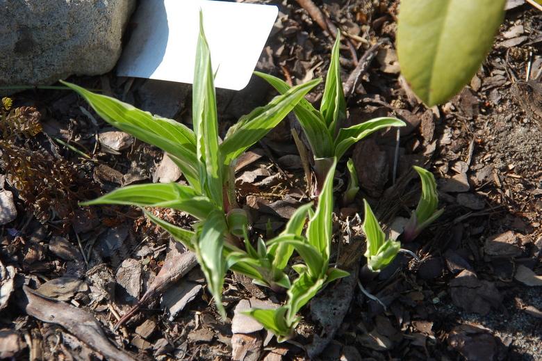 Hosta City Dog już rozwija liście, ale jakimś dziwnym zrządzeniem losu nie została przemrożona, choć rosnąca o metr dalej Valley's Top jest kompletnie zeszklona