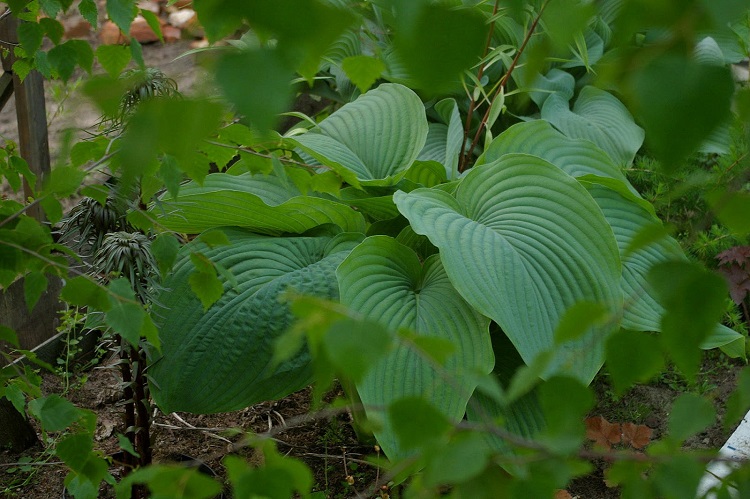 Wyobraźcie sobie w swoim ogrodzie rozłożystą roślinę , która rozsiadając się, jako soliter na cienistym trawniku, zajmuje miejsce o ok. 2,5 metrowej szerokości a jej liście osiagają 70 cm długości. Takiej hosty jeszcze nie było na rynku , więc introdukcja Skaggsów zrobiła prawdziwą furorę , choć nie jest papugowato kolorowa: jej liście mają ciemnozieloną barwę i są lekko błyszczące a od spodu sinawe . Także kwiaty nie są urodziwe - rozwijają się na przełomie VI/VII i są jasnolawendowe osadzone na długich łodygach . Ja wycinałam je , gdy roślina była młoda, aby nie traciła energii na zawiązywanie nasion. Teraz zostawiam nasienniki, licząc , że wśród przypadkowych siewek pojawi się jakaś ciekawa, które chwyci mnie za serce . Wielkim plusem Empress Wu, jest jej duża dynamika wzrostu , o czym pisałam w pierwszym poście/wstępniaku. W tworzeniu nowych kłów (zagęszczaniu) jest nieco wolniejsza - corocznie , przybywa średnio jeden kieł . Duże liście powodują jednak,że od niemal początku, tworzona kępa wydaje się wiele większa i bardziej gęsta, niż faktycznie ma to miejsce.