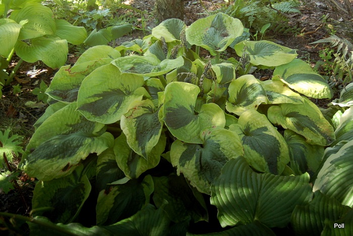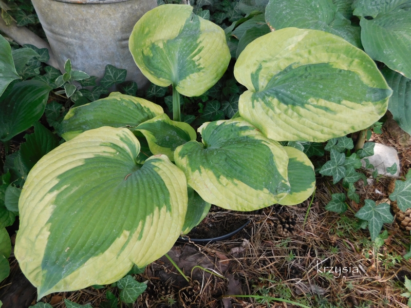 To mocna hosta, choć nie jest bardzo wysoka. Co 2 tygodnie dokarmiam ją gnojówką z chwastów i dużo podlewam. Kwitnie bardzo obficie, więc w młodości wycinałam jej łodygi kwiatowe, aby nie osłabiała się zawiązywaniem nasion.