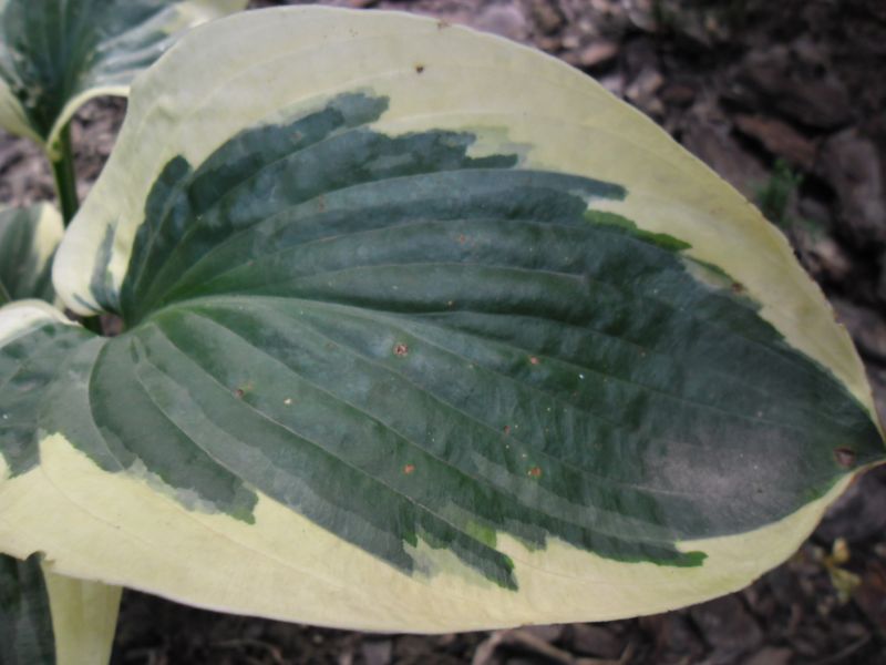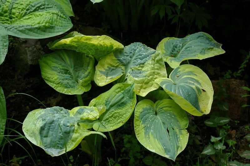 Liście: grube, burchlaste ( szczególnie wioną wspaniale pomarszczone); zielononiebieskie centrum z kremowo-białym nieregularnym marginesem