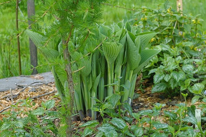 Moją musiałam dwa razy zasypywać korą. Szczęśliwie, że został podniesiony ceglany mur, pod którym ta hosta rośnie, bo inaczej stałaby w słońcu i zapewne już by rozwijała liście.