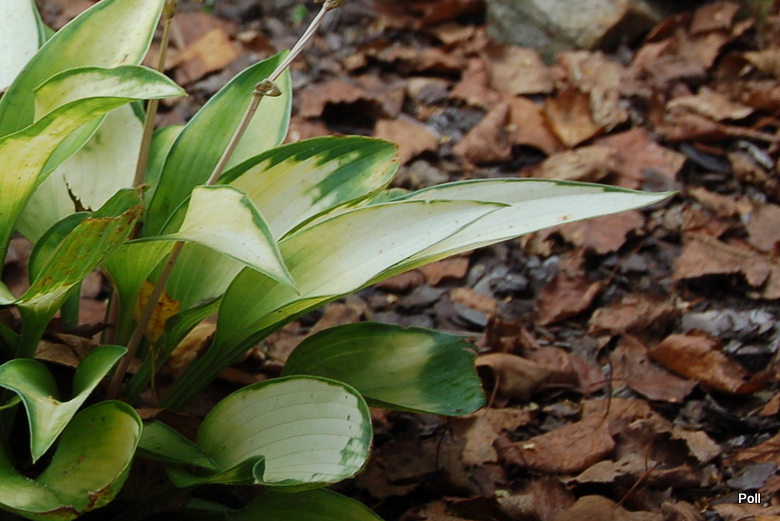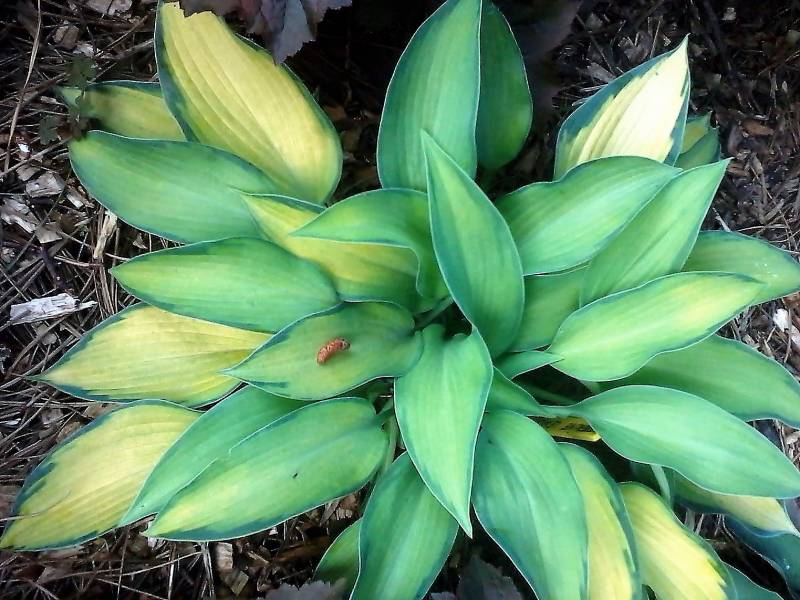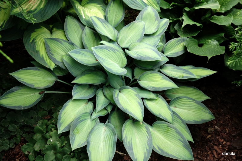 Liście podłużne, grube, dobrej substancji. Najpierw niebiesko-zielony, w ciągu sezonu środek liścia wybarwia się na jaśniejszy, aż do kremowego. Cienki zielony margines utrzymuje się do końca sezonu.
