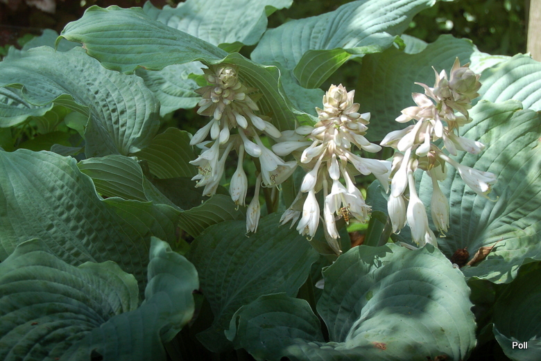Kwiaty: niemal białe, okres kwitnienia rozpoczyna się w czerwcu i trwa w lipcu