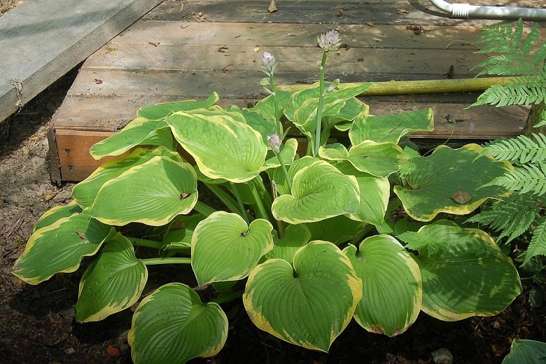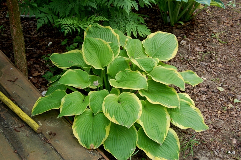 - hosta o kolorach podobnych do Lakeside Cha Cha, ale zupełnie innej budowie liści i całej kępy