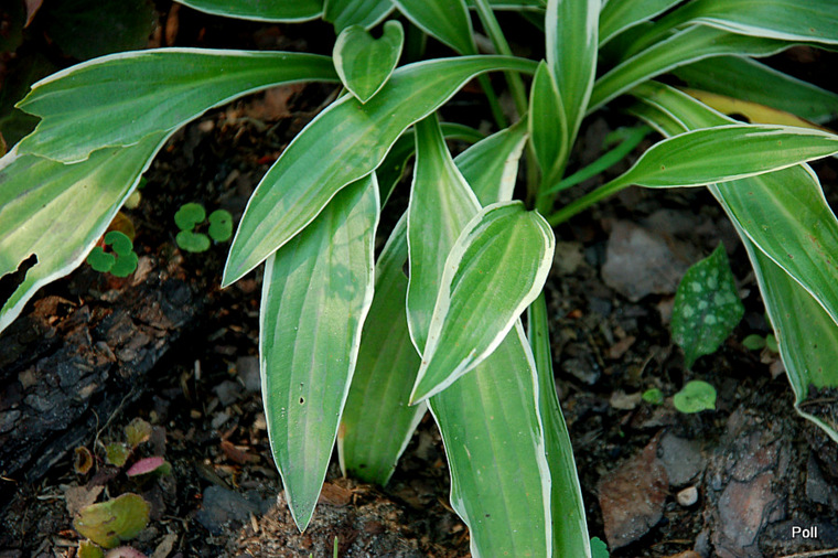 Liście: wąskie, podłużne o lancetowatym kształcie; zielone centrum otoczone żółtokremowym (w trakcie sezonu białym), cieniutkim marginesem z delikatna falbanką ; cały liść jest lekko lśniący i sprawia wrażenie falującego