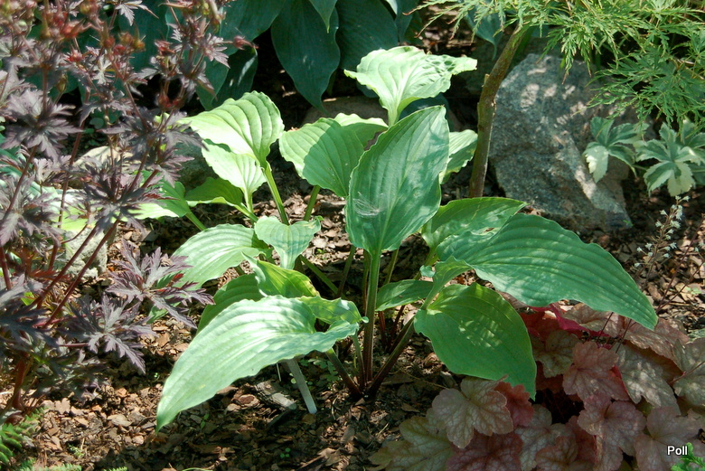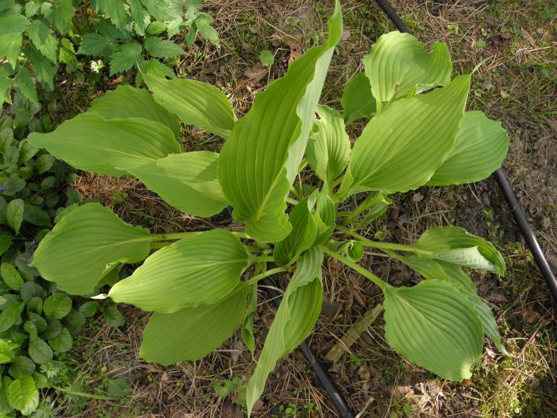 Po przemarznięciu w ubiegłym roku, kępa Love Song - jak u kilku innych host - sama się podzieliła na kilka części. Środkowa część zanikła i kły są oddalone od siebie o kilka centymetrów. Ogólnie kępa jest mniejsza a cała roślina niższa. Szkoda, bo to jedna z falbaniastych odmian, które bardzo lubię.