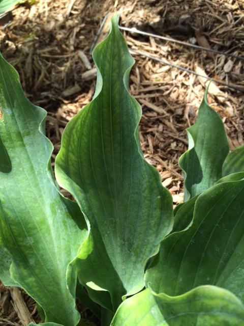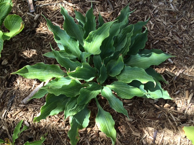 Pięknie pofalowana hosta Joy Ride rośnie na pólcienistym stanowisku, ale wiosną jest ono słoneczne. Dlatego też, niemal co rok jest podmrażana przez wiosenne przymrozki i to zazwyczaj już nie w fazie kłów a rozwijających się liści. W tym roku takie nieprzyjemności zostały jej oszczędzone, Zimna Zośka pognała gdzieś daleko.