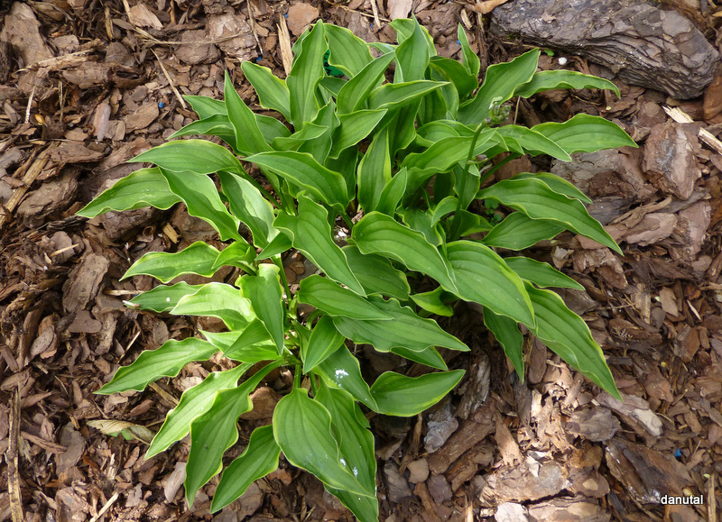 Rozmiar: S wysokość 15-20cm Liście: wąskie,ciemno zielone z żółtym falistym marginesem Kwiaty: purpurowe (fioletowe) w czerwcu - lipcu na 45-50 cm łodygach Zalecane stanowisko: wg Fransena od słońca do cienia