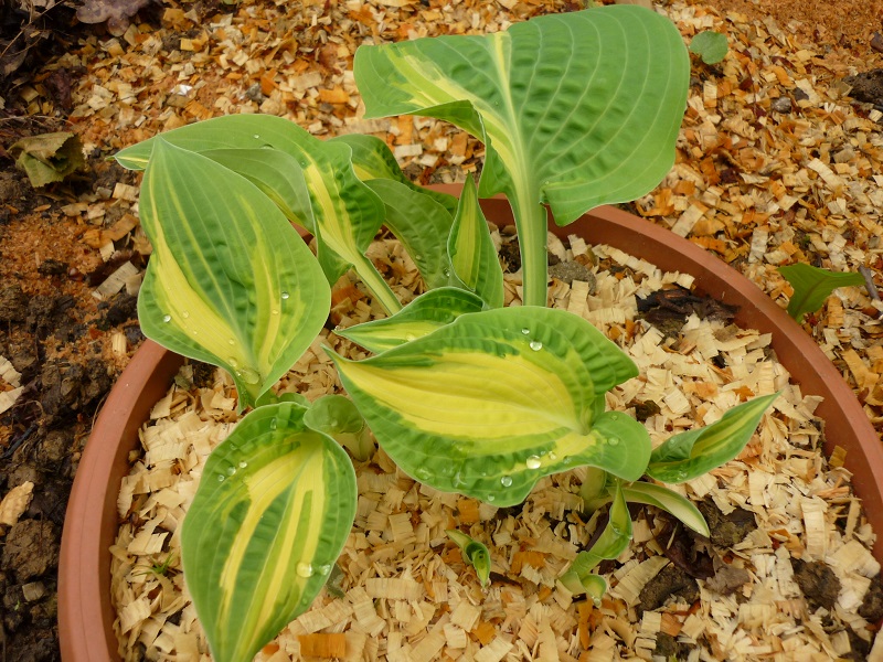 Zielone odrosty mają dobrą substancję liści i są chyba powrotem Happy Dayz do prababki, sieboldiany. Kolorystycznie są niebieskawo, a raczej sinozielone.