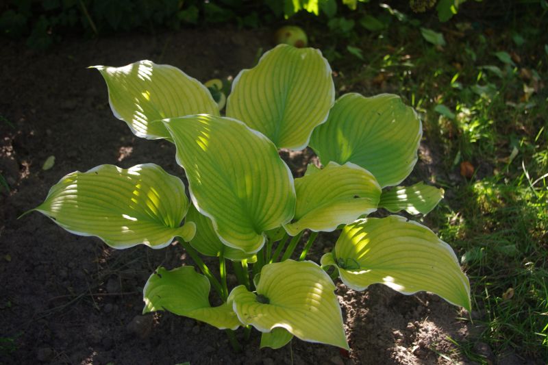 Hosta Lakeside Cha Cha jest u mnie od 2018 roku. Sadzonki pochodzą z różnych źródeł, ale posadziłam je razem - pod wierzbą, gdzie mają słońce przez 2-3 godziny wczesnym popołudniem. Nie przyrastają chyba w ogóle, może miejsce im nie odpowiada. Obecnie łacznie 4 kły (3 i 1).