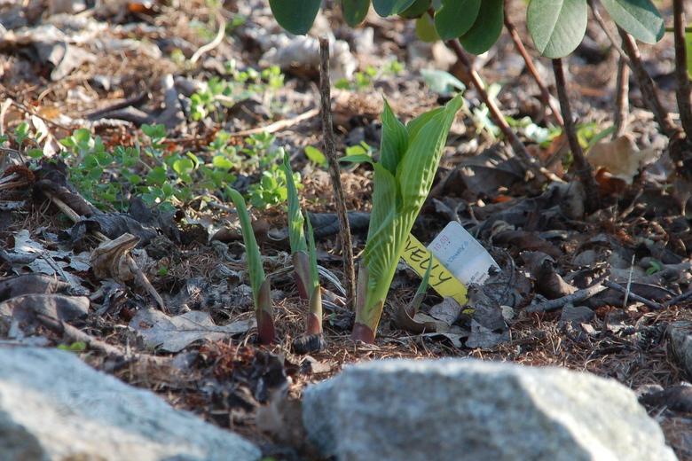 Clovelly, to jedna z host, które podzieliłam i przeniosłam na naturalnie wilgotne stanowisko. Niestety, wypadło mi z głowy, że ona stosunkowo wcześnie staruje i nie dałam jej miejsca w całorocznym cieniu. Obie kępy z podziału ucierpiały od przymrozków, ale jedna do tego stopnia, ze wycięłam jej wszystkie kły. Drugą - te ze zdjęcia - tylko obrałam z przemrożonych liści.