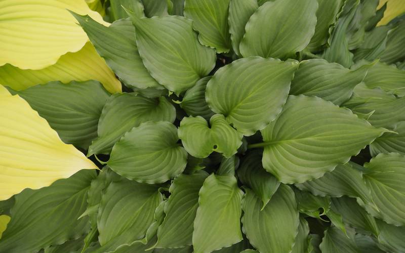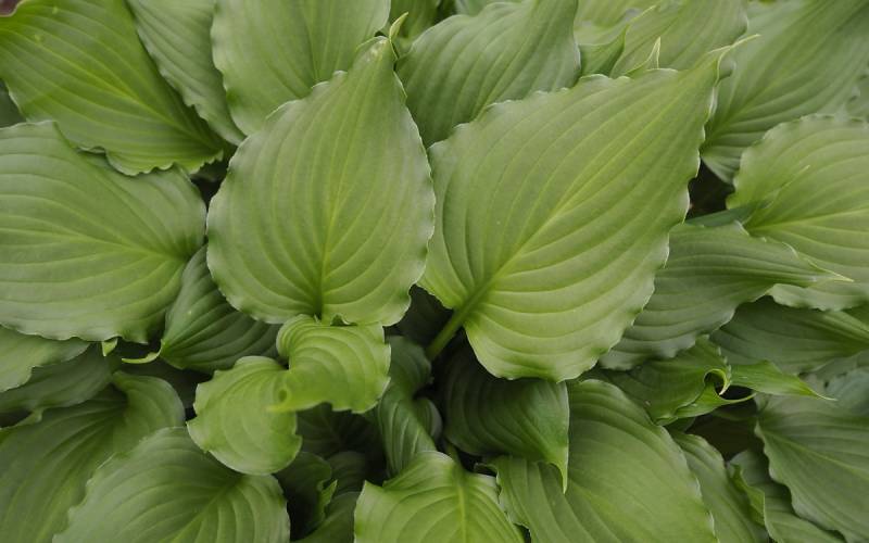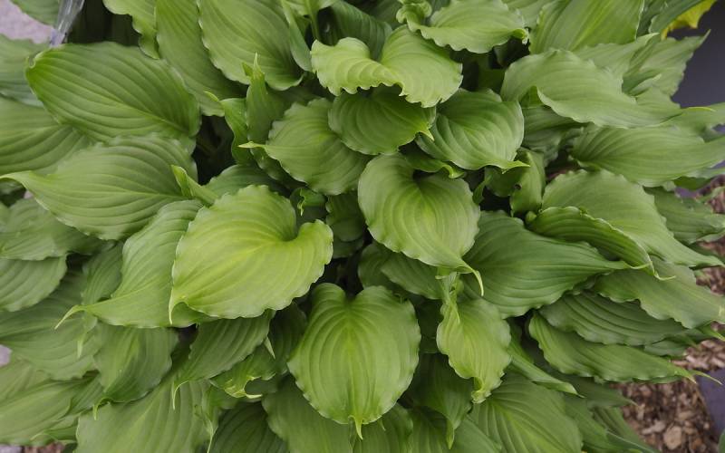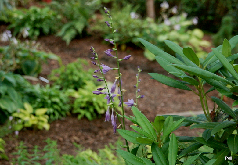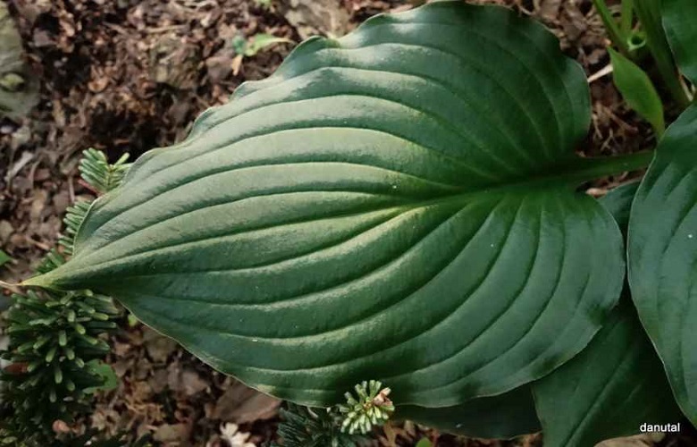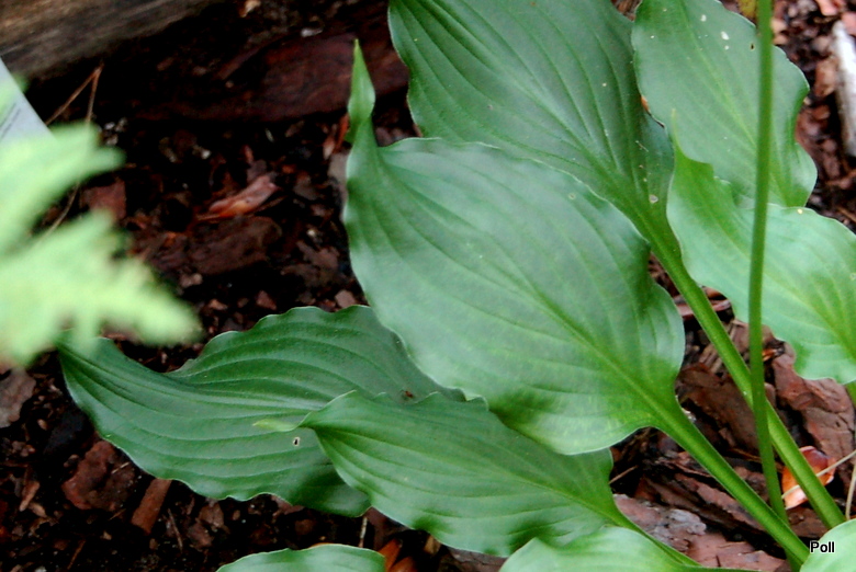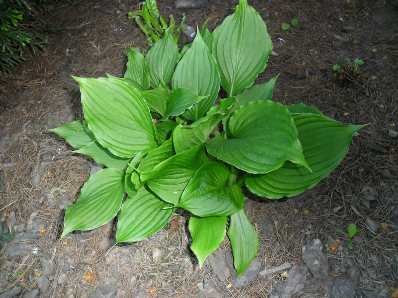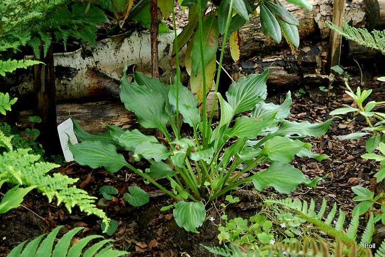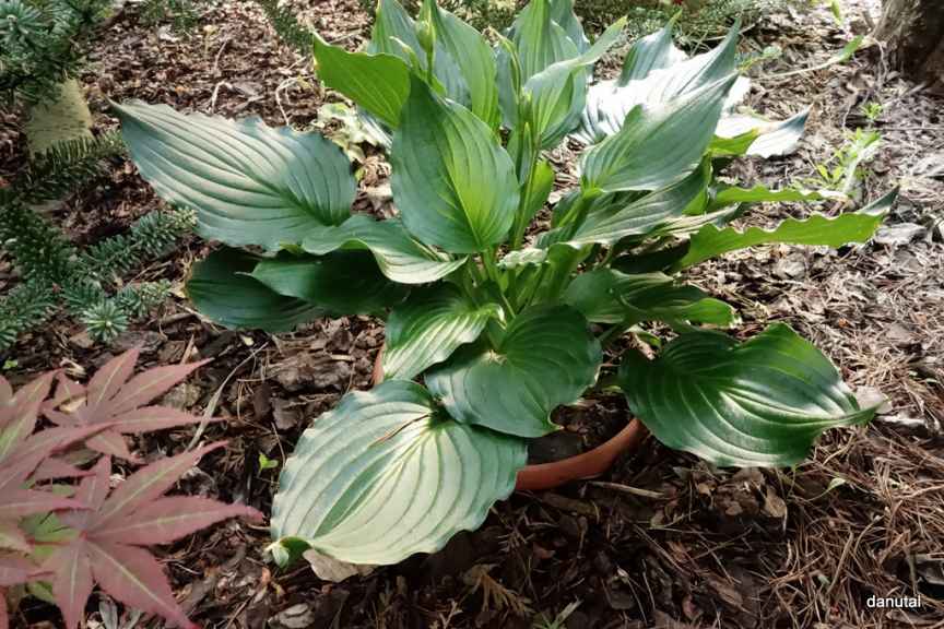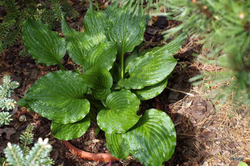 Hosta Stirfry - kupiona ponownie w 2017 roku, (wiosną) sadzonka z in vitro. poprzedni egzemplarz złapał chróbsko, które wyglądało na mozaike, więc szybko poszła w ogień. Posadziłam ja w dość ciemnym miejscu, u stóp mocno podlewanego rododendrona, na paprocianym stoku.