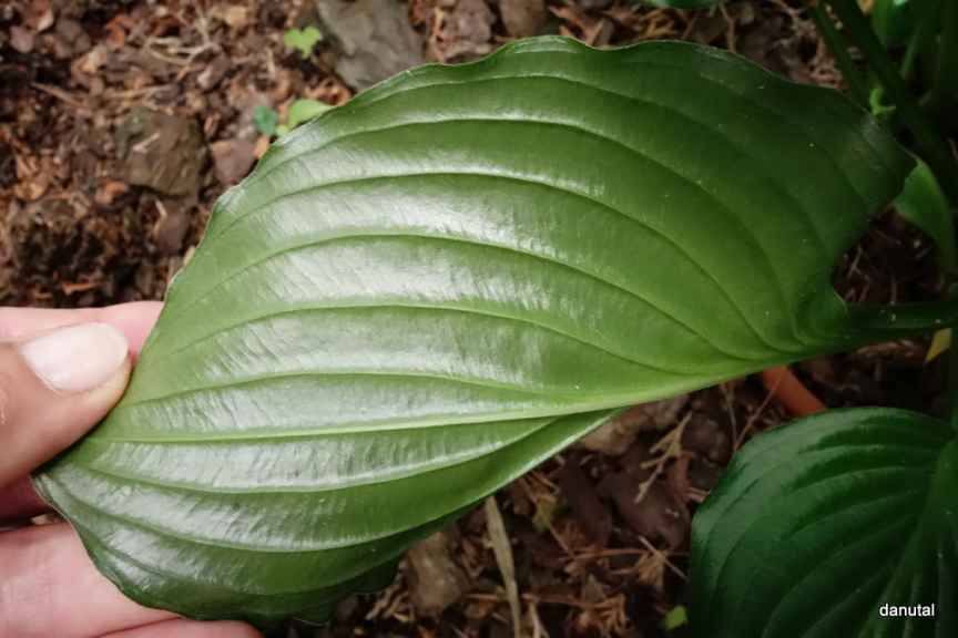 Rozmiar: S/M wysokość 35-45cm Liście: ciemnozielone, błyszczące liście z falistym marginesem i skręconych końcówkach Kwiaty: fioletowe Zalecane stanowisko: od słońca do cienia