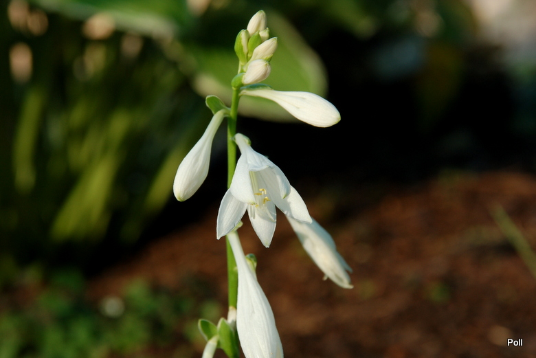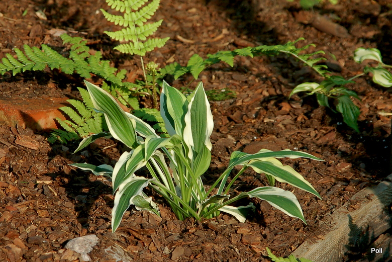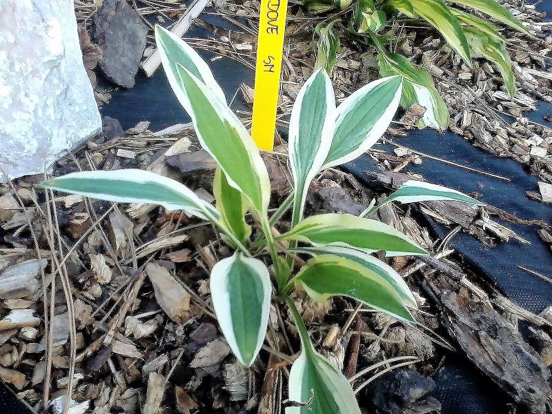 Młoda hosta White Dove - pierwszy sezon w moim ogrodzie. Posadziłam ją na półcienistym, stale wilgotnym stanowisku i wygląda na to, że spodobało się jej