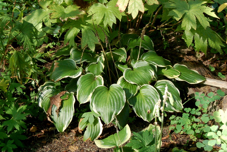 Naprawdę piękna, bardzo zgrabna hosta o ślicznych liściach...Az dziw bierze, ze u nas na forum nie widziałam chyba ani jednego jej zdjęcia. Przyjechała do mnie 2 lata temu, z Holandii, jako jednokłowa sadzonka z in vitro i została posadzona w półcieniu drzew liściastych, ale w dość kiepskiej ziemi. Ile razy obok niej przechodze, podziwiam te zielono-kremowe serduszka o tak regularnym kształcie, że aż się wierzyć nie chce.