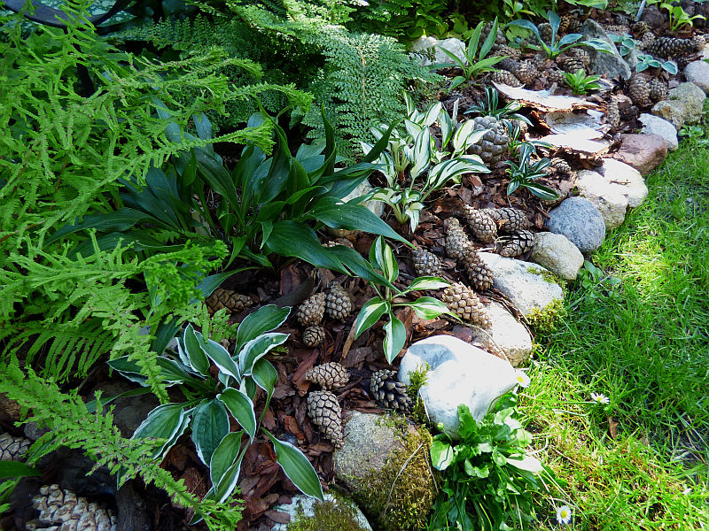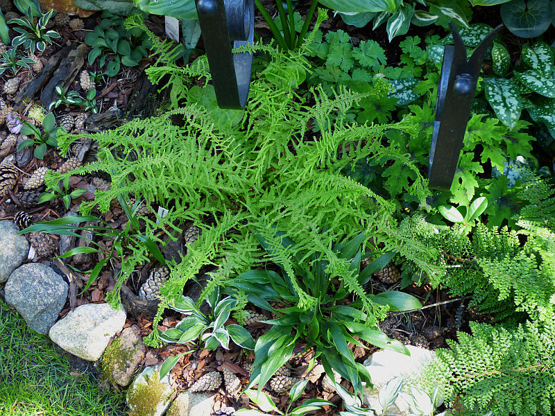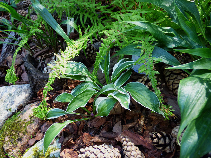 Widok z góry... w objęciach wietlicy samiczej 'Dre's Dagger' oraz host 'Tortifrons' i 'Corkscrew'