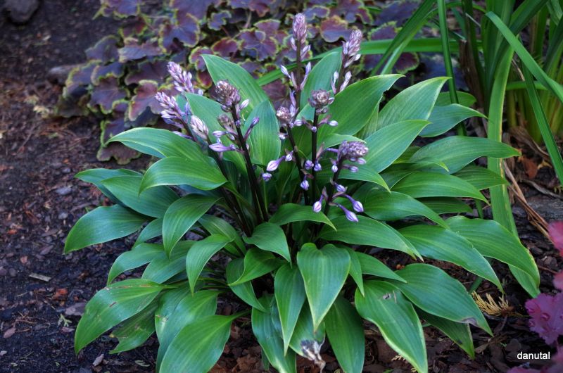 - hosta 'odporna na jesień'- kiedy inne rośliny już zamierają , ona nie tylko wygląda pięknie, ale właśnie wtedy rozpoczyna kwitnienie