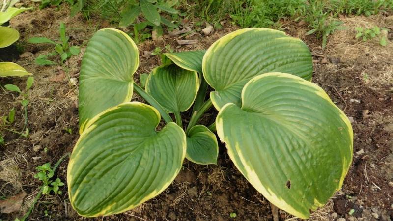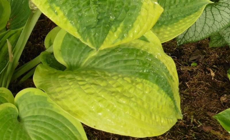 'Laura and Darrell' otoczeniu innych host, na dość suchym, półcienistym stanowisku